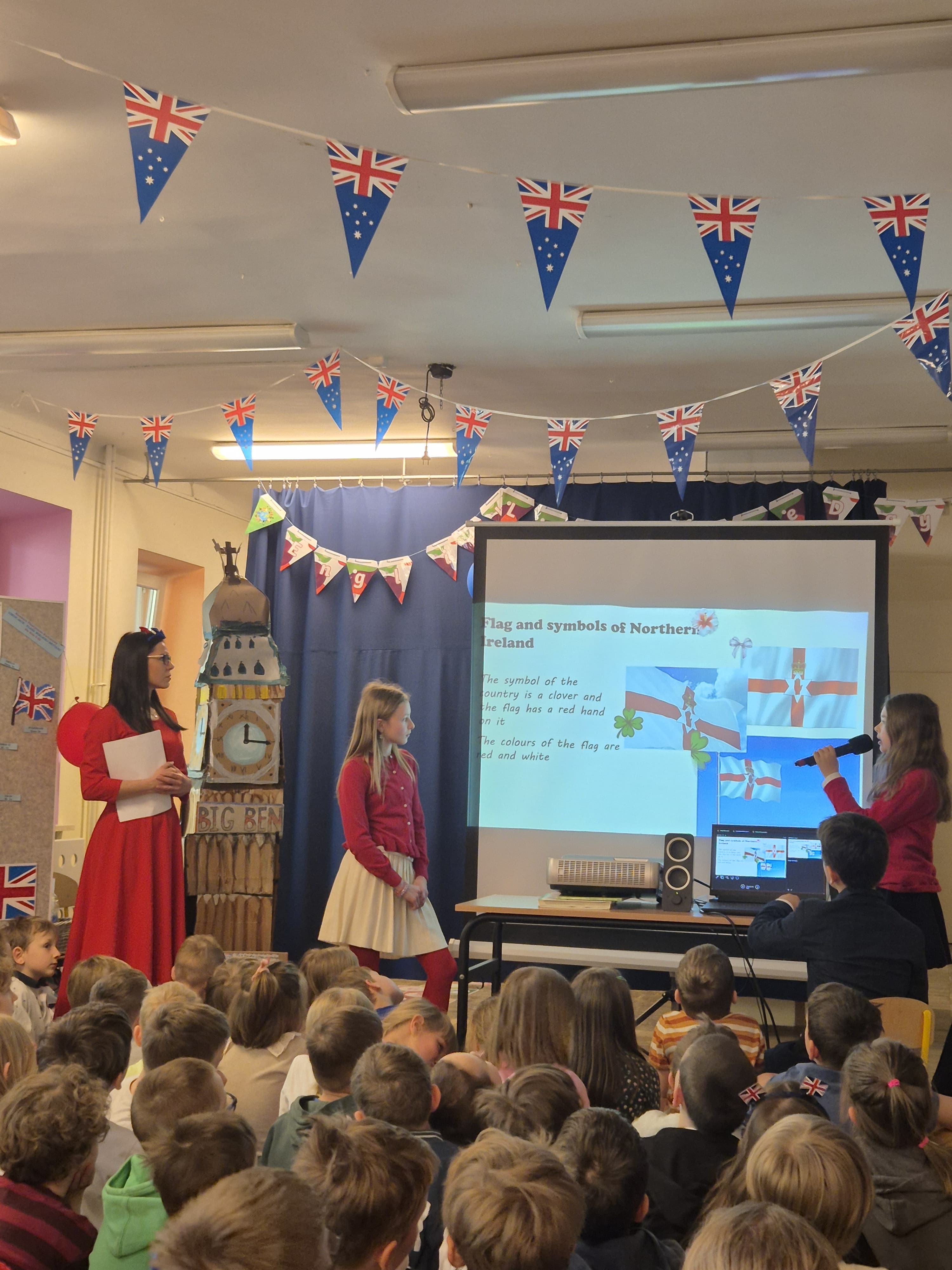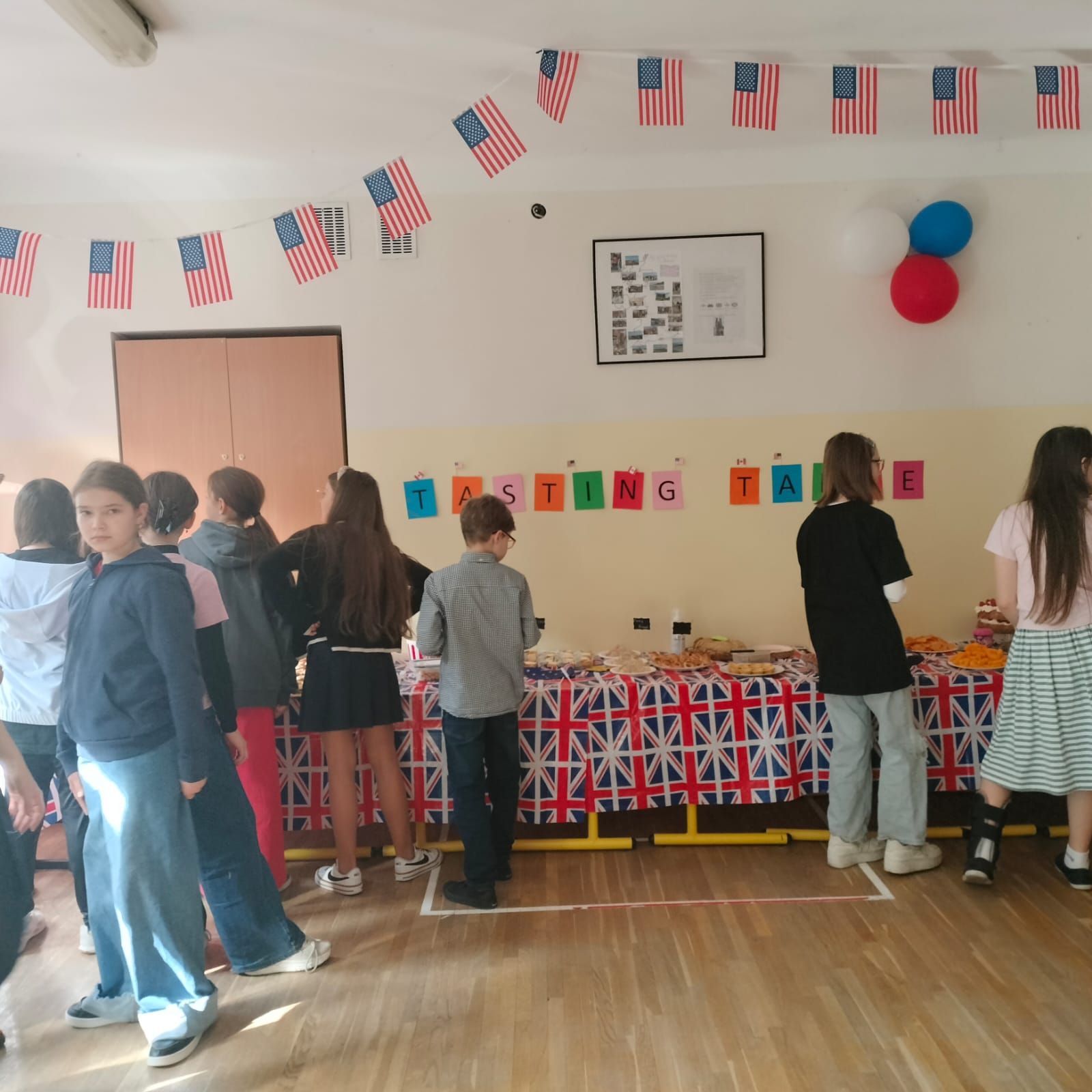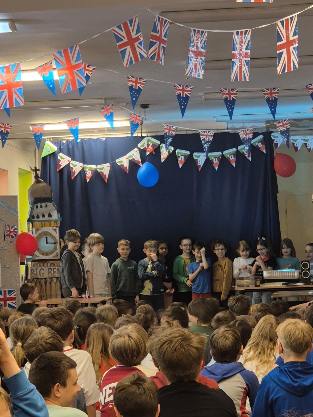 W dniu 23-go kwietnia w naszej szkole obchodziliśmy Dzień języka angielskiego. Uczniowie dowiedzieli się, dlaczego język angielski ma swoje święto, poznali kultury krajów anglojęzycznych: Wielkiej Brytanii, USA, Kanady i Australii oraz spróbowali charakterystycznych dla nich potraw. Ponadto, klasa 1a zaprezentowała krótki występ artystyczny, a uczniowie klas 0-3 mieli okazję uczestniczenia w quizie kulturowym. Była nauka, mnóstwo okazji do wspólnej zabawy, śpiewu i tańca oraz pyszne jedzenie:)