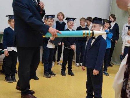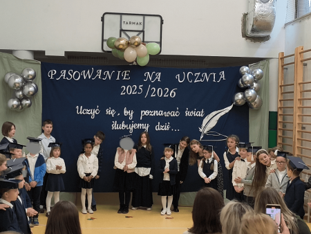 W pierwszy piątek października - 3 października 2025 r. odbyła się w naszej szkole uroczystość pasowania na ucznia. Jest to szczególny dzień, który na długo pozostanie w pamięci każdego ucznia klasy pierwszej oraz jego rodziców. W tym dniu dzieci oficjalnie przyjęte zostały do grona uczniów szkoły.
