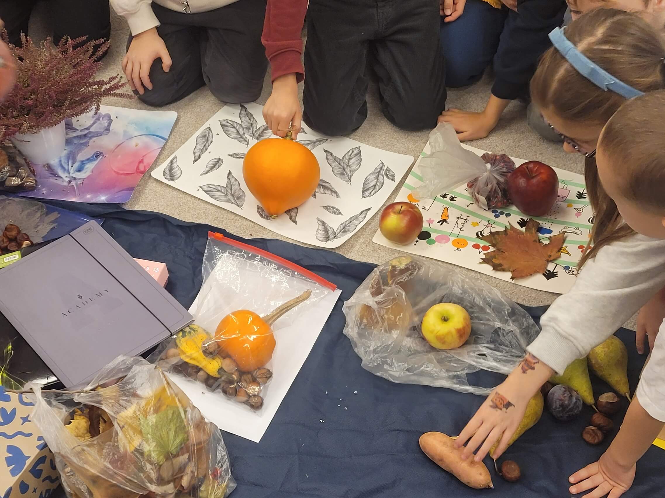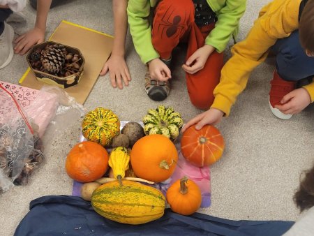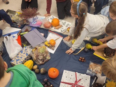 Uczniowie klasy 1 „zaprosili” do swojej klasy Panią Jesień z jej skarbami – były m.in. owoce, warzywa, kolorowe liście, kasztany, żołędzie. Skarby te posłużyły nam na lekcjach matematyki, przyrody, plastyki oraz zajęć dwujęzycznych z języka angielskiego. Na koniec pracy tygodniowej miała miejsce najsmaczniejsza lekcja – wspólna degustacja!
