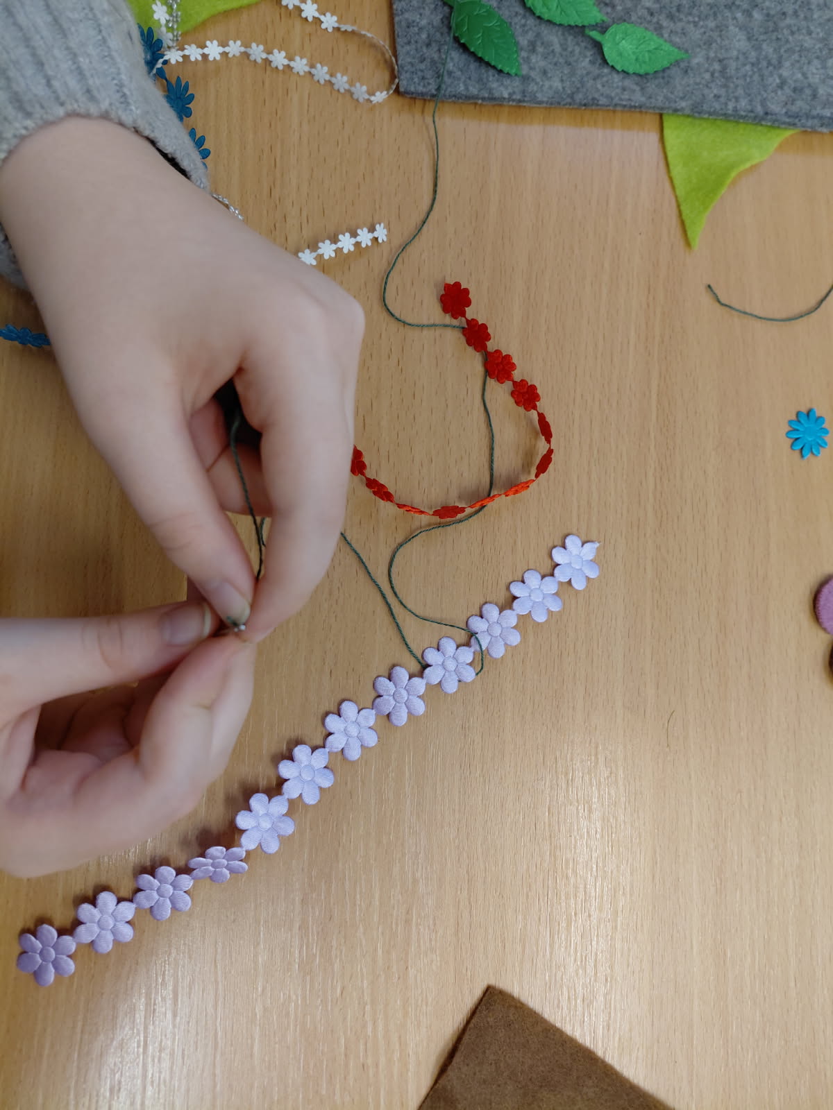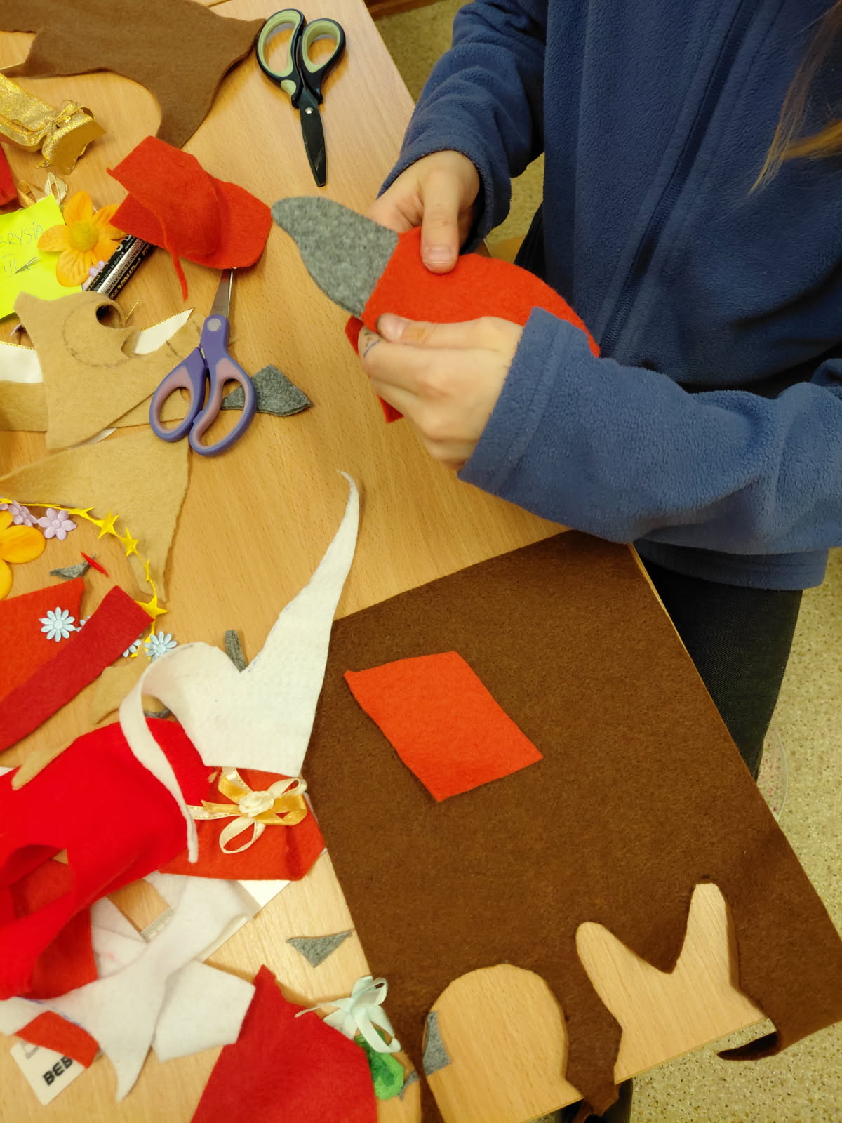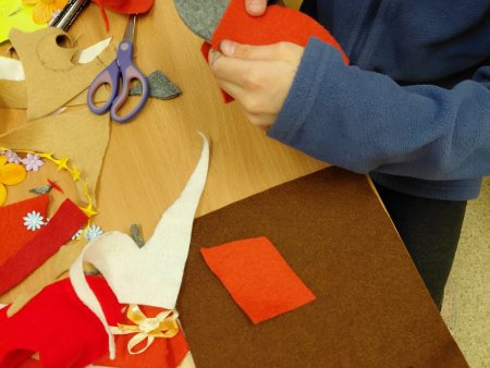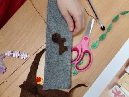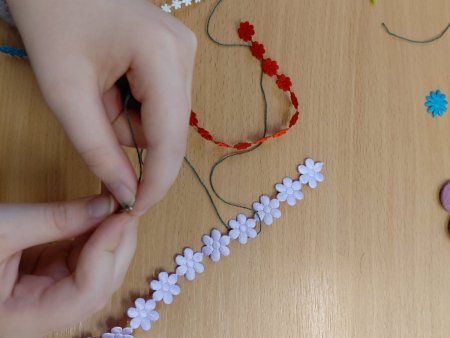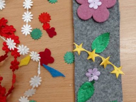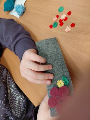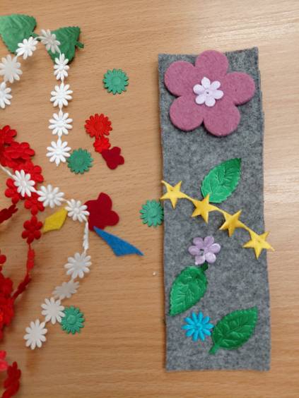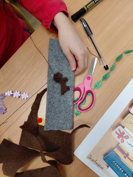 Dziewczynki z klas 3-5 SP uczęszczające na kółko "Robótki ręczne" wykonały podczas zajęć breloczki do kluczy oraz zakładki do książek.