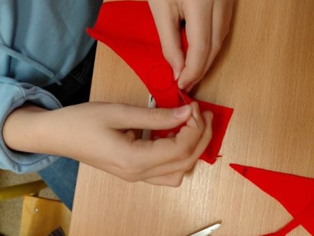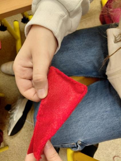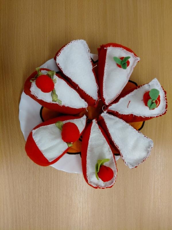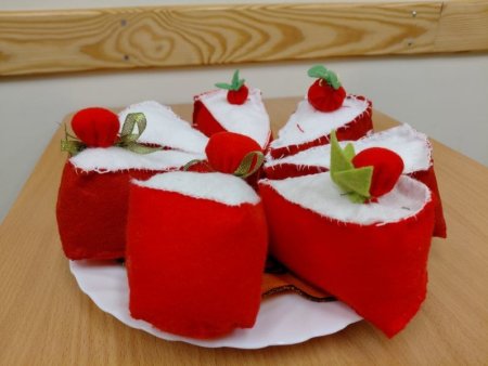 "A na zajęciach robótek ręcznych „pieczemy” z filcu: tort truskawkowy, donaty i muffinki oraz „smażymy” pączki. Kotek dostał nowe ubranko :)) "