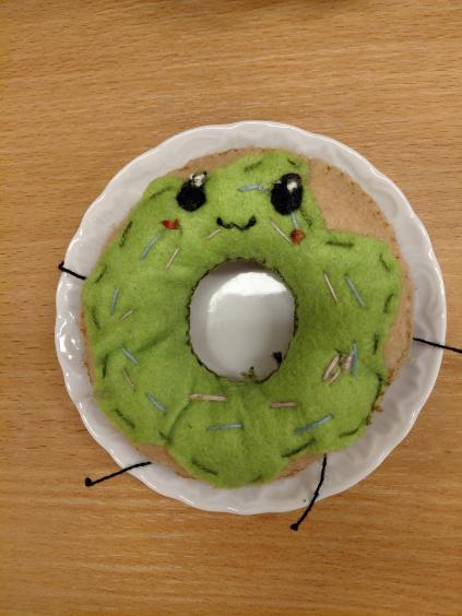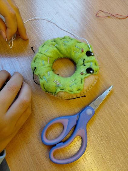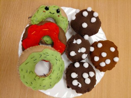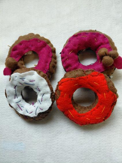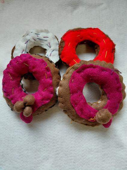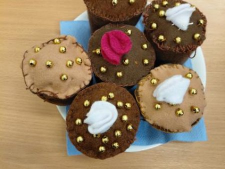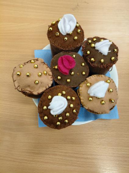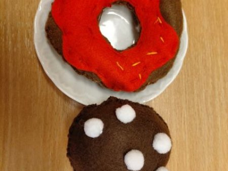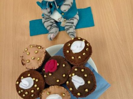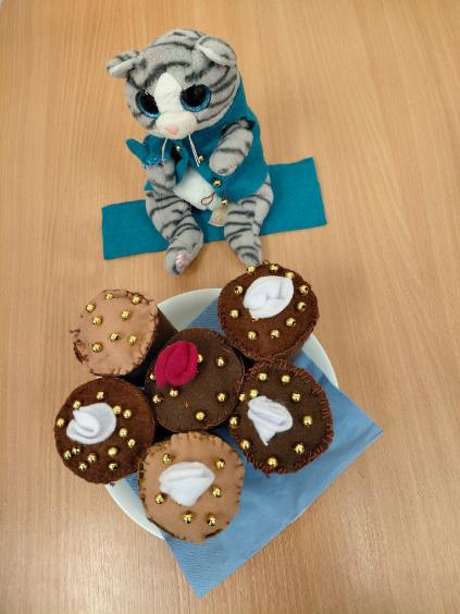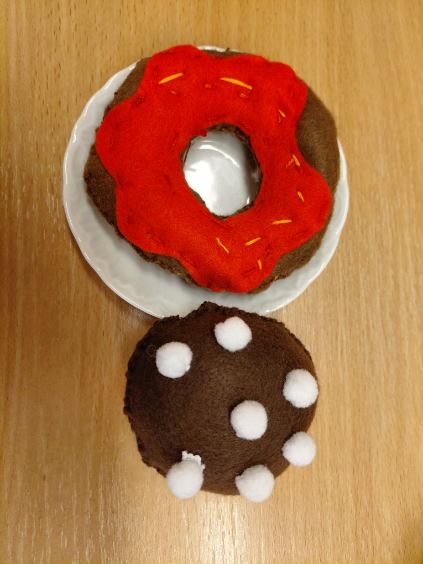"A na zajęciach robótek ręcznych „pieczemy” z filcu: donaty i muffinki oraz „smażymy” pączki. Kotek dostał nowe ubranko :)) "