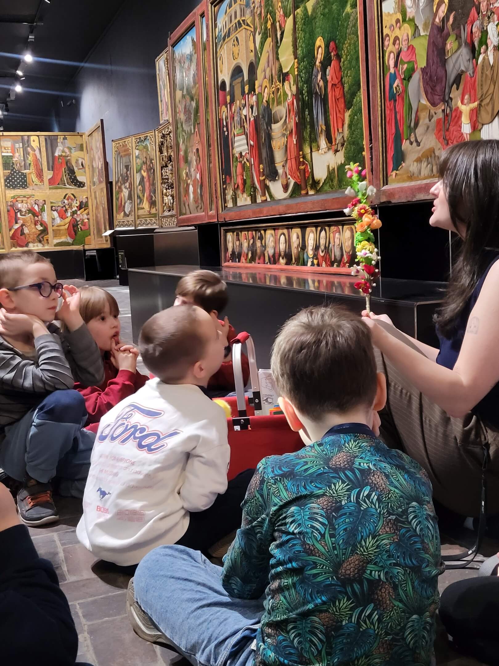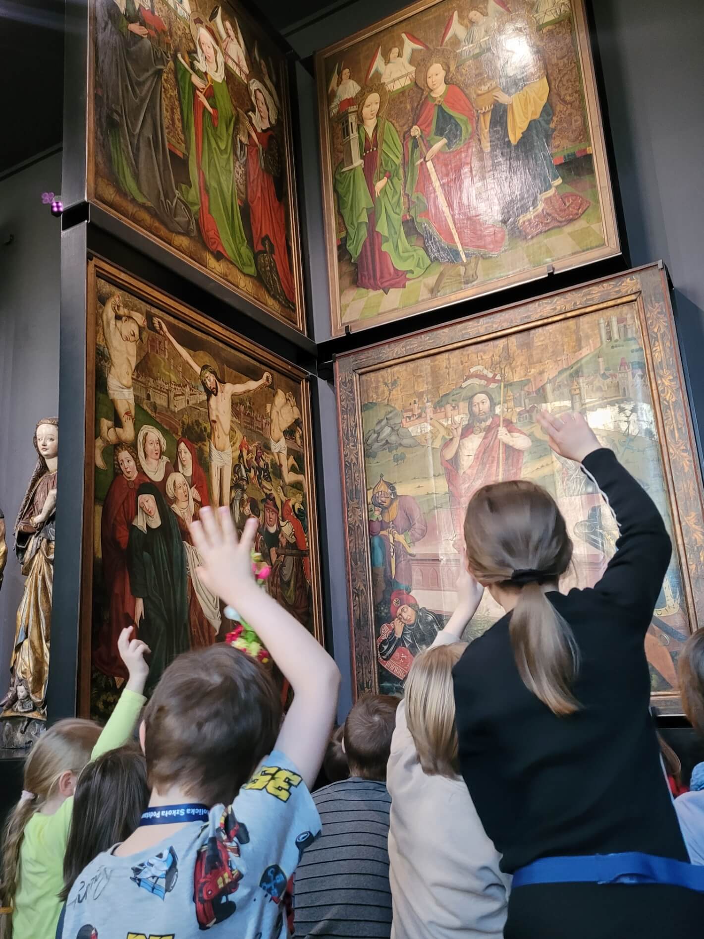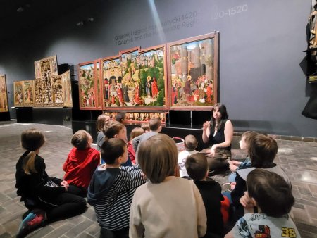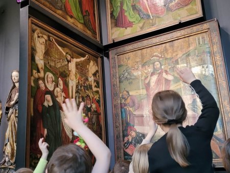 Nasi uczniowie z klasy 1 odwiedzili przed Świętami Wielkanocnymi Muzeum Narodowe, by porozmawiać o zwyczajach związanych ze Świętami Wielkiej Nocy – malowaniu pisanek i święceniu pokarmów. Dzieci poznały różnicę między śmigusem a dyngusem, a także dowiedziały się, jak wydarzenia Wielkiego Tygodnia były przedstawiane w sztuce.