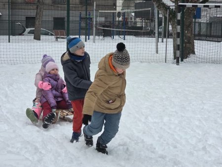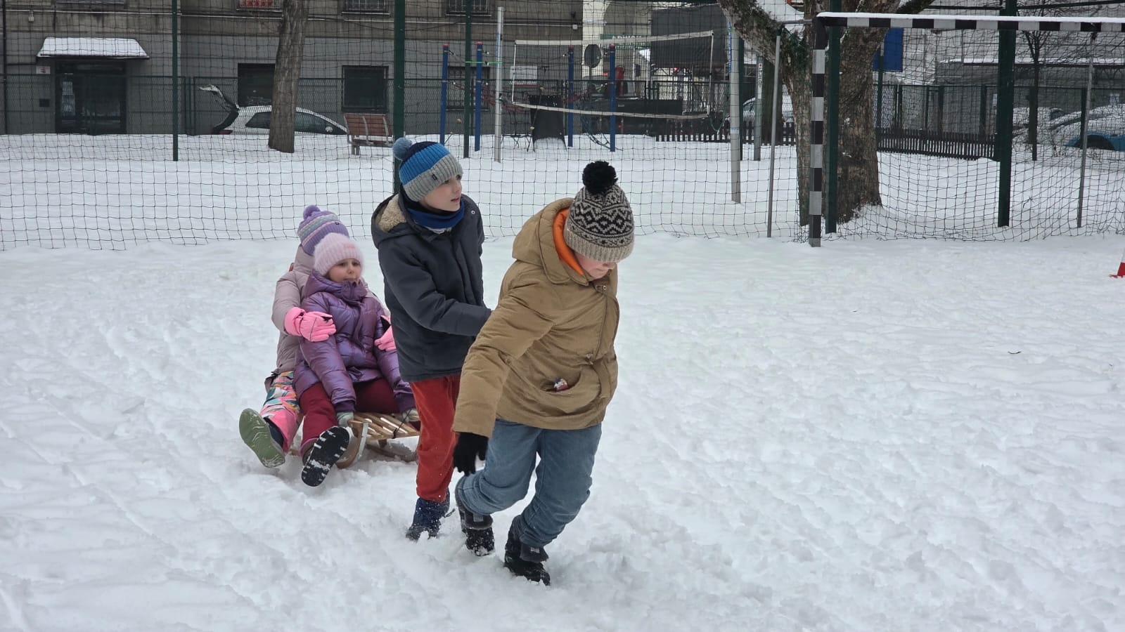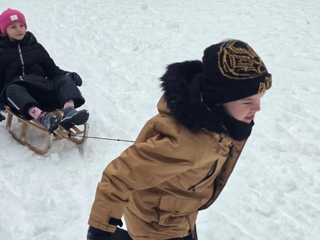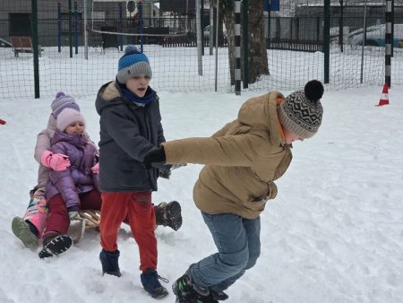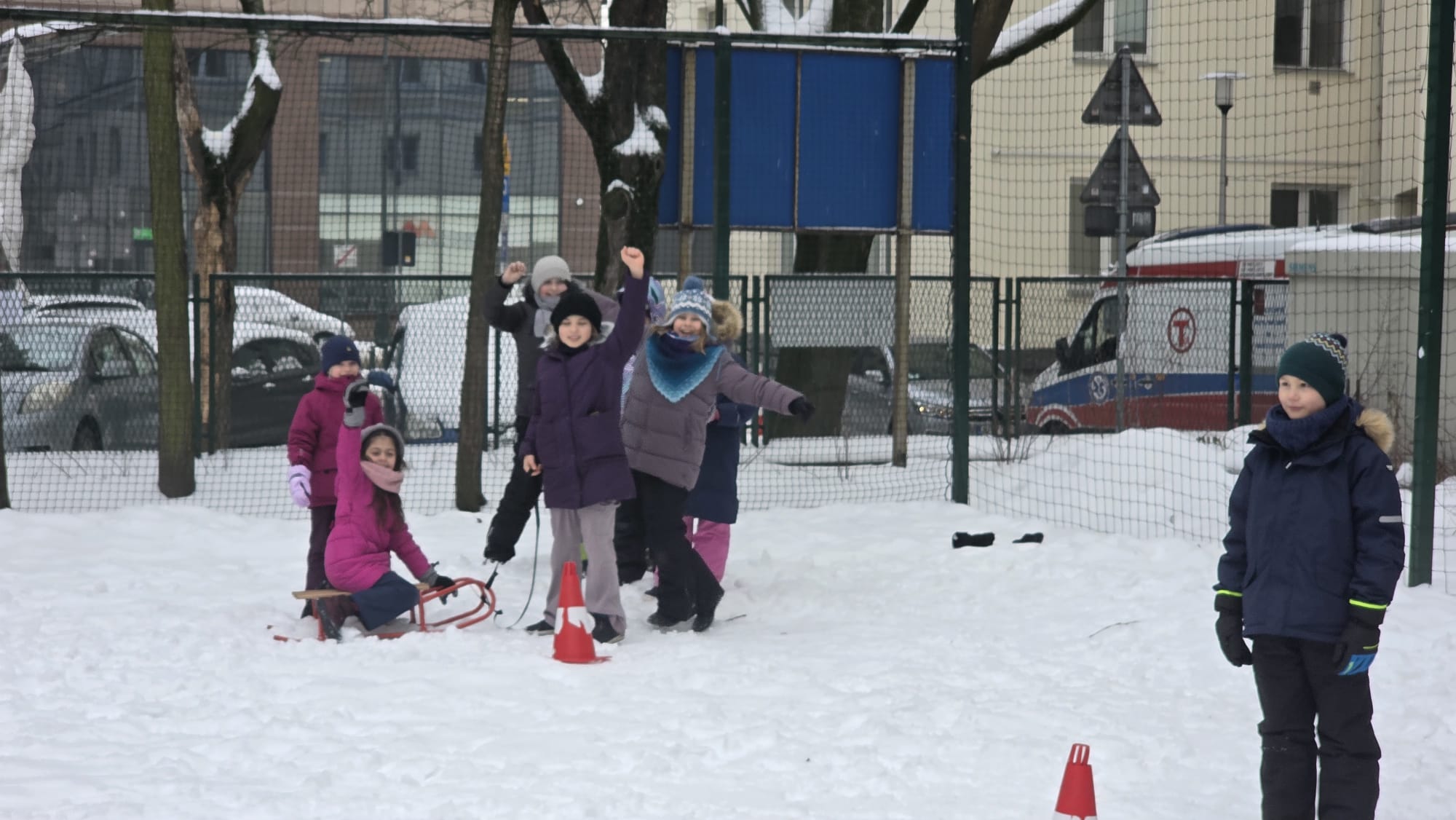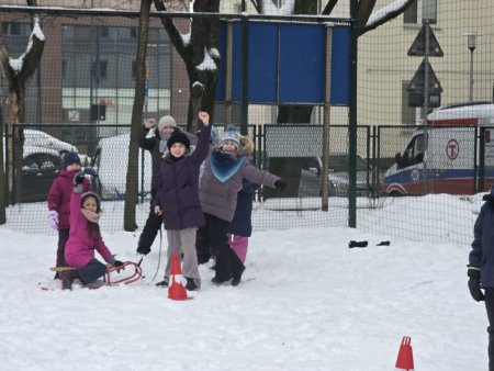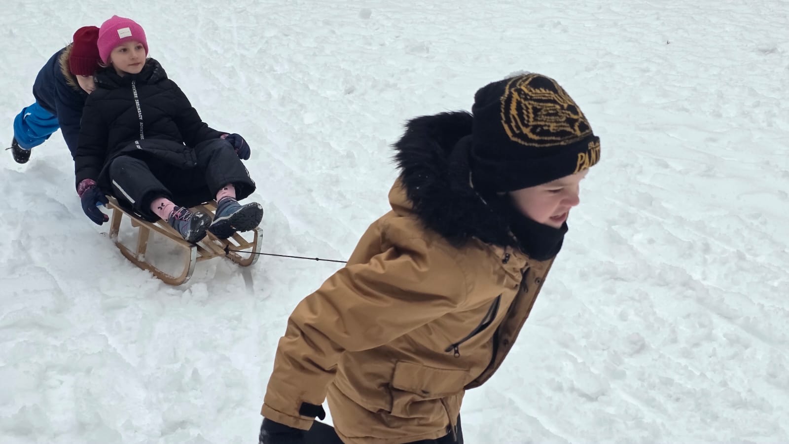 Lekcja wychowania fizycznego też może być świetną zabawą podczas zimy. Uczniowie klasy 3 oraz 2a mieli turniej saneczkowy.
